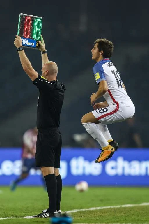 Indiana Vassilev of USA substitues Blaine Ferri during the FIFA U-17 World Cup Round of 16 match between Paraguay and USA on Monday in India.