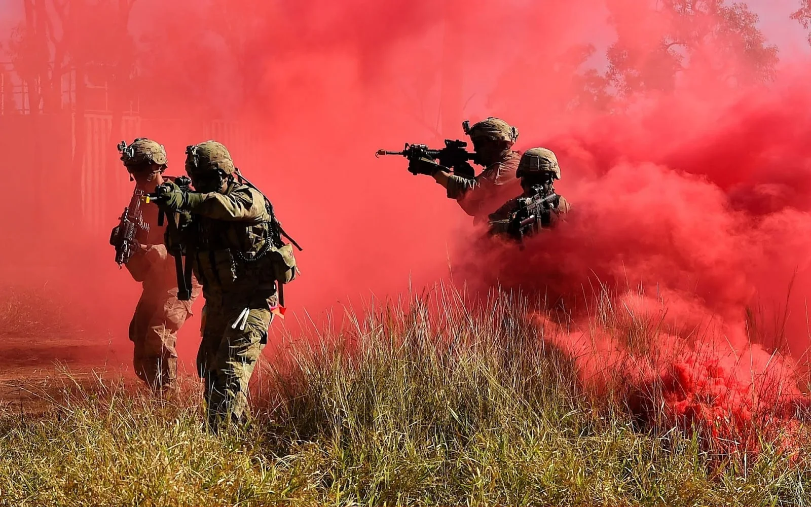 | U.S Army soldiers from Apache Company 235 Inf. 25th Infantry Division assault an urban complex during Exercise Southern Jackaroo in Townsville, Australia. Exercise Southern Jackaroo is an annual training event involving US Marines, US Army, Japanese Ground Self Defence Force and Australian troops. Ian Hitchcock/Getty Images |