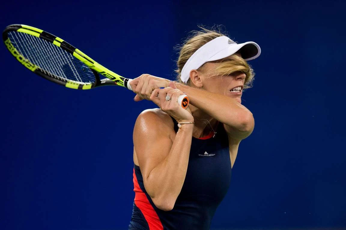 © Nicolas Asfouri/AFP/Getty Images Blind shot Caroline Wozniacki of Denmark hits a return against Rebecca Peterson of Sweden during their women's singles third round match of the WTA Wuhan Open tennis tournament on Tuesday in Wuhan, China. Wozniacki won 6-4, 6-1. |